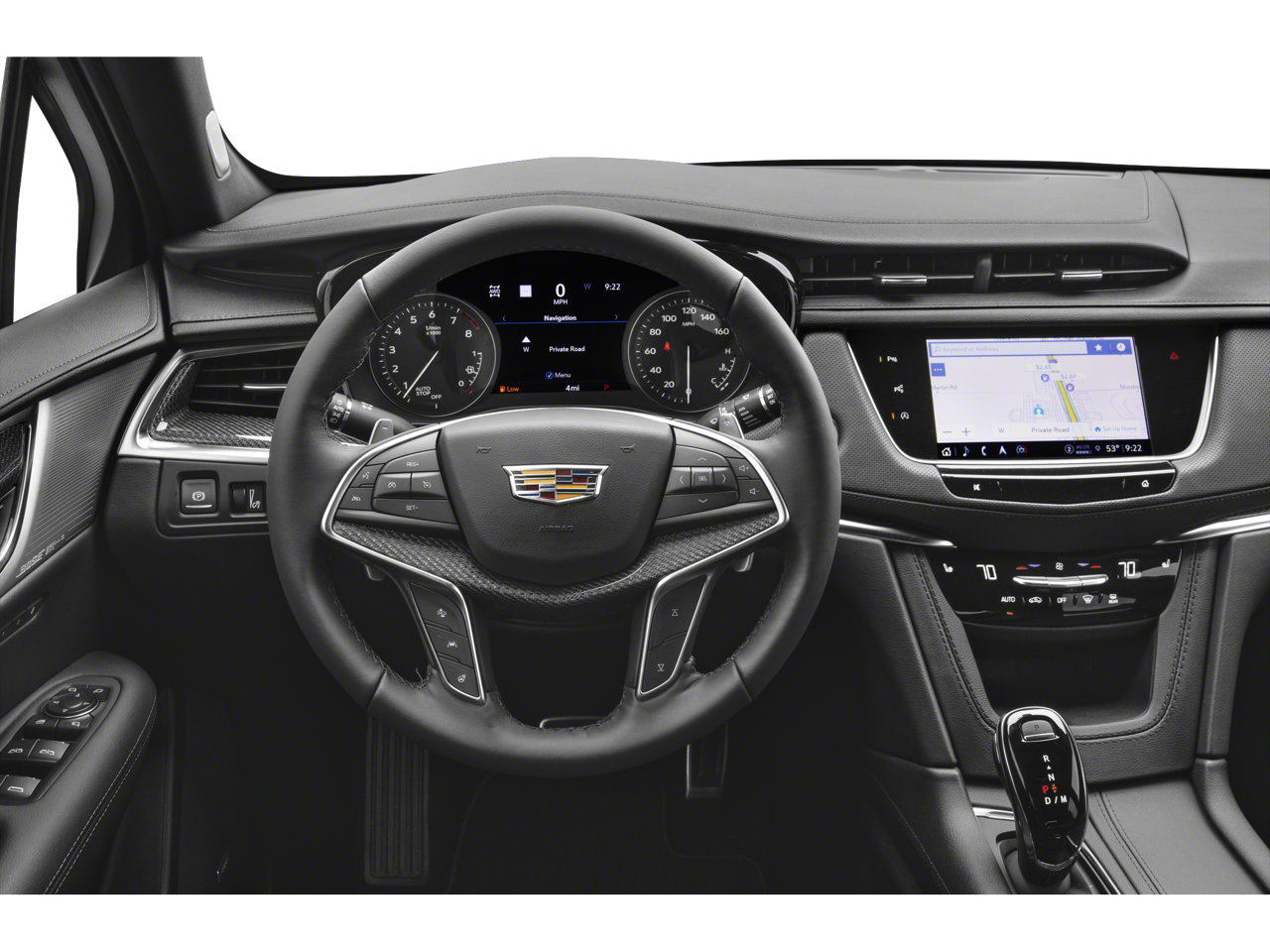 TECHNOLOGY PACKAGE includes (UHS) 8" color gauge cluster, (UV6) Head-Up Display, (UV2) HD Surround Vision, (UKK) Rear Pedestrian Alert, (DRZ) Rear Camera Mirror, (CWA) Rear Camera Mirror Washer and (UKG) Automatic Parking Assist with braking, WHEELS, 20" (50.8 CM) 12-SPOKE DIAMOND CUT ALLOY with Dark Android Satin finish pockets, CADILLAC USER EXPERIENCE WITH EMBEDDED NAVIGATION, AM/FM STEREO with connected navigation providing real-time traffic, 8" diagonal color information display, 4 USBs, 2 auxiliary power outlets, personalized profiles for each driver's settings, Natural Voice Recognition, Phone Integration for Wireless Apple CarPlay®/Wireless Android Auto® capability for compatible phone, Connected Apps and Teen Driver (STD), ENGINE, 3.6L V6, DI, VVT, WITH AUTOMATIC STOP/START (310 hp [231 kW] @ 6600 rpm, 271 lb-ft of torque [366 N-m] @ 5000 rpm) (STD), TRANSMISSION, 9-SPEED AUTOMATIC (STD). Cadillac AWD Sport with Stellar Black Metallic exterior and Jet Black interior features a V6 Cylinder Engine with 310 HP at 6600 RPM*.